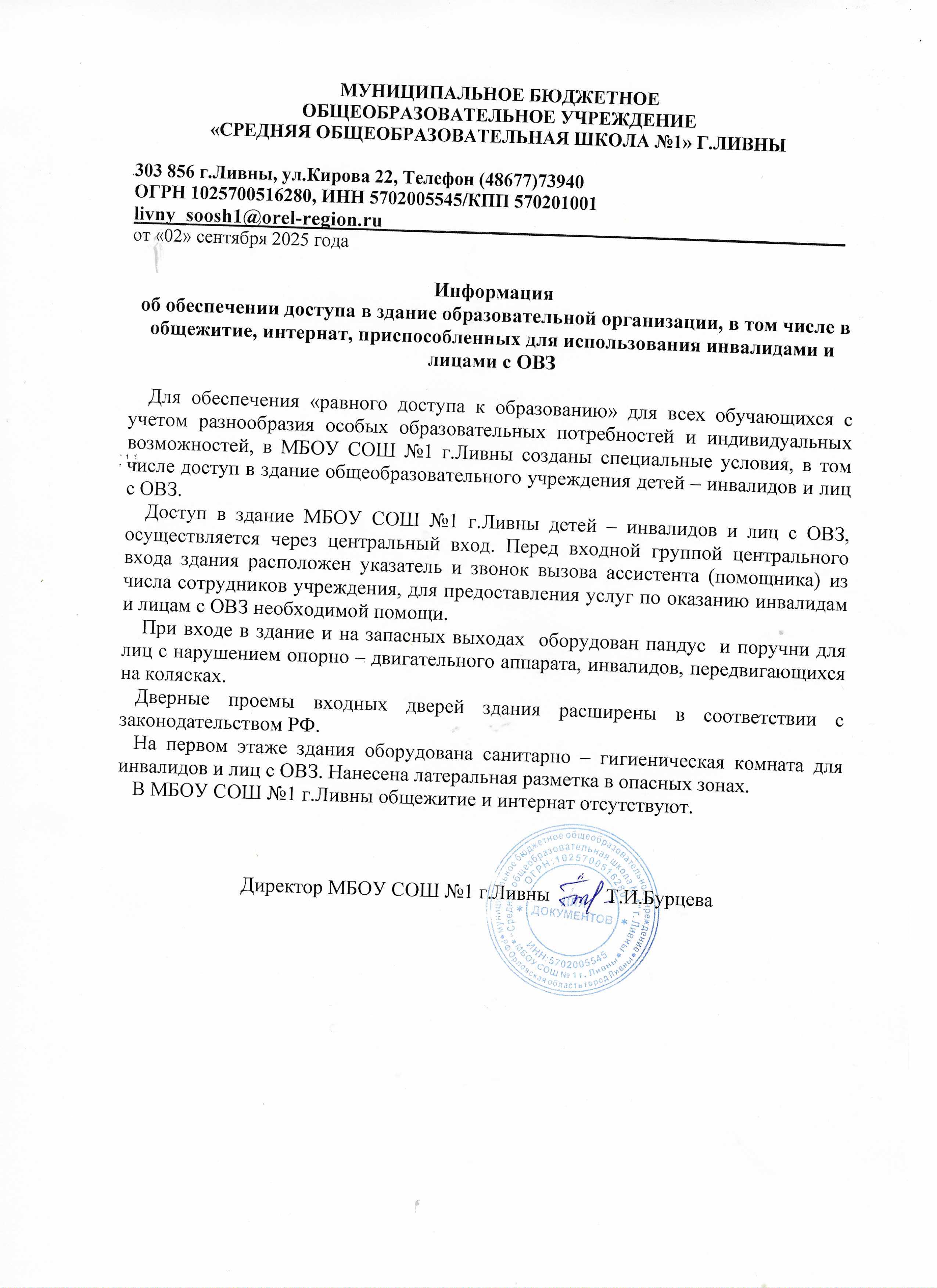 Фотоотчет по реализации мероприятий Государственной программы РФ «Доступная среда» в МБОУ СОШ №1 г.Ливны