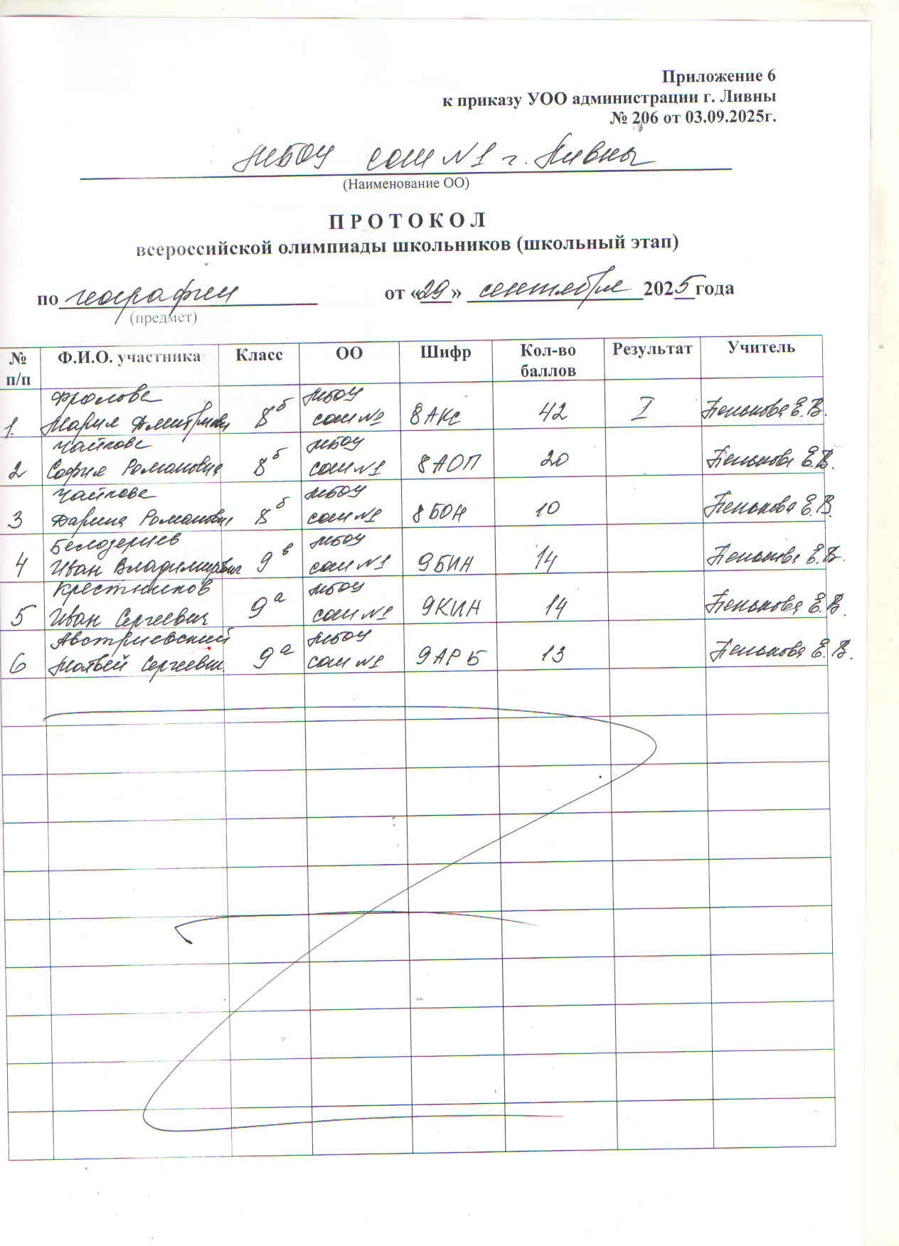 Результаты школьного этапа ВсОШ: